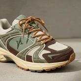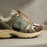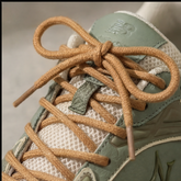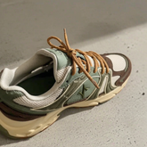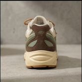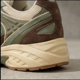 Sage green suede and earth brown overlays like they mixed them in the 90s, honeycomb mesh like something you'd find in the mountains or a basement in Amsterdam.