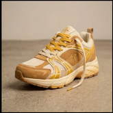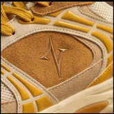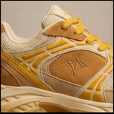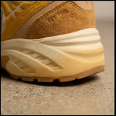 Golden mustard suede like they tanned it in the 70s, metallic shimmer on the TPU, that premium finish that only comes from time and craft.